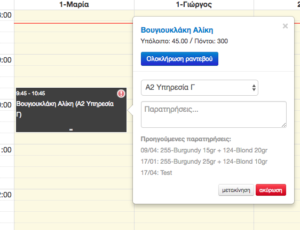 Όταν τελειώσει το ραντεβού του πελάτη, πατάτε ολοκληρωση ραντεβού.